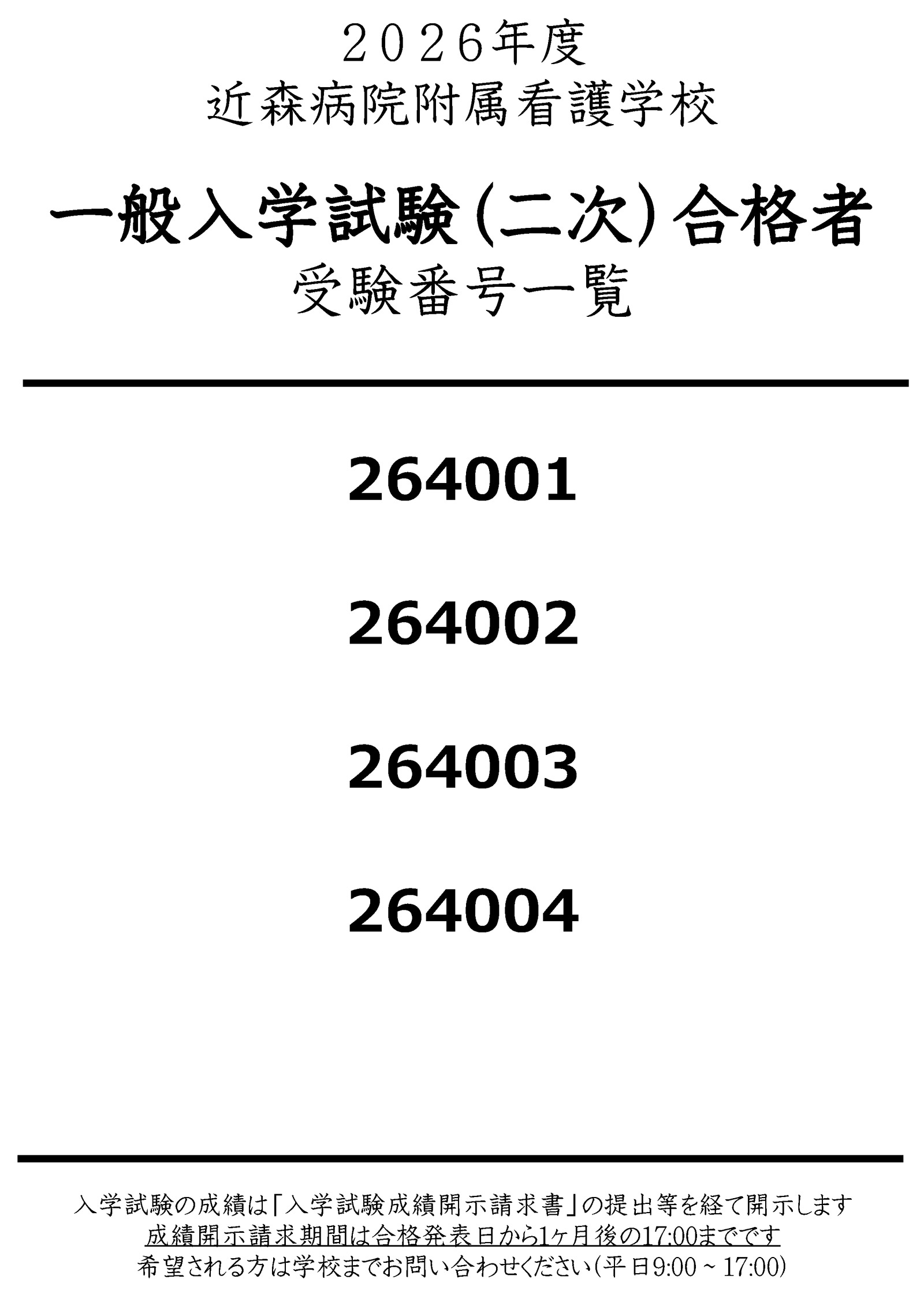 2026年度 一般入学試験(二次) 合格発表