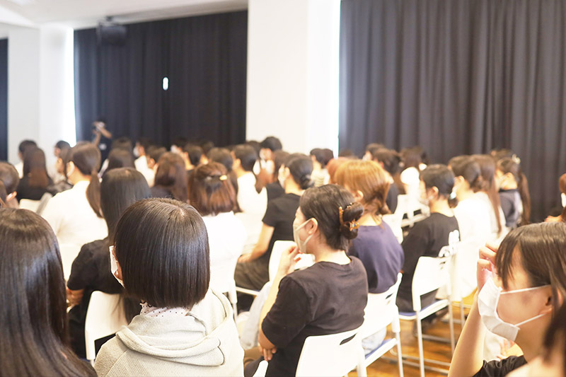 しっかり働きしっかり学ぶ、そして楽しむときは思いきり楽しむ――そんな近森会グループの魅力が伝わるお話に、学生たちも笑顔で耳を傾けていました。