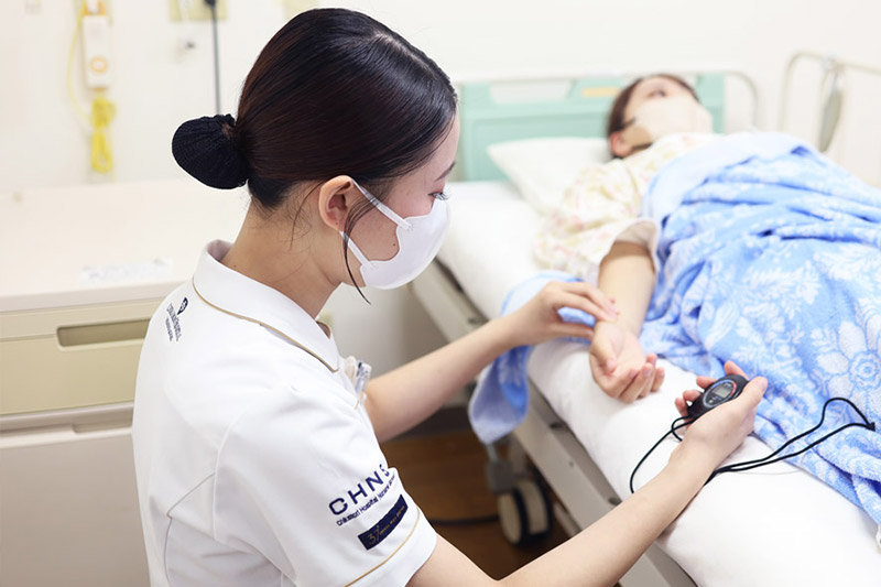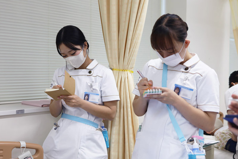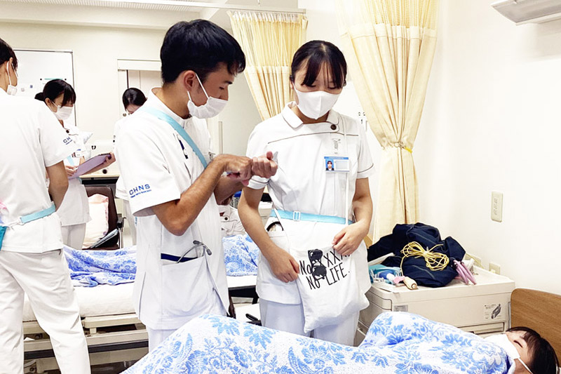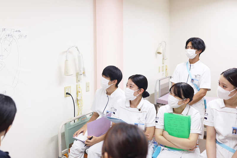 バイタルサインの測定だけでなく、声かけの仕方や安楽な姿勢への配慮など、“患者さんにとって心地よい看護とは?”を考えながら丁寧に取り組む姿が見られました。