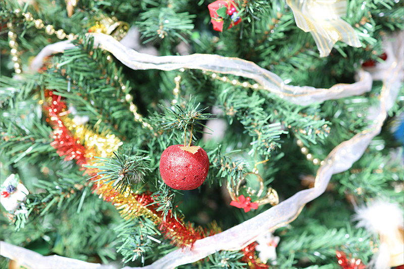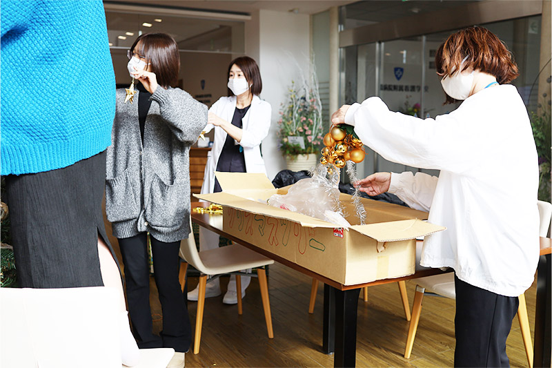 授業の合間を縫いながらオーナメントの配置や電飾の取り付けまで、ひとつひとつ丁寧に装飾してくれました。