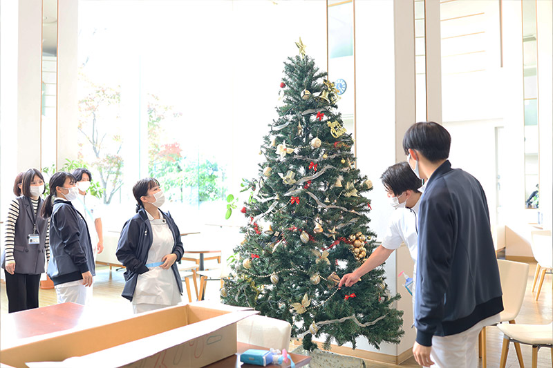 看護学校の冬の風物詩として、毎年多くの学生が楽しみにしているクリスマスツリー。